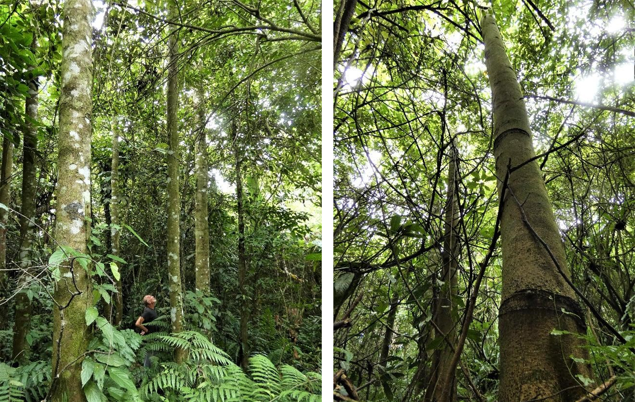 Norm van’t Hoff, who facilitated the original tree planting admiring the height of the mature 'bunut' trees, a native rainforest fig species which was recommended by the local park authorities.